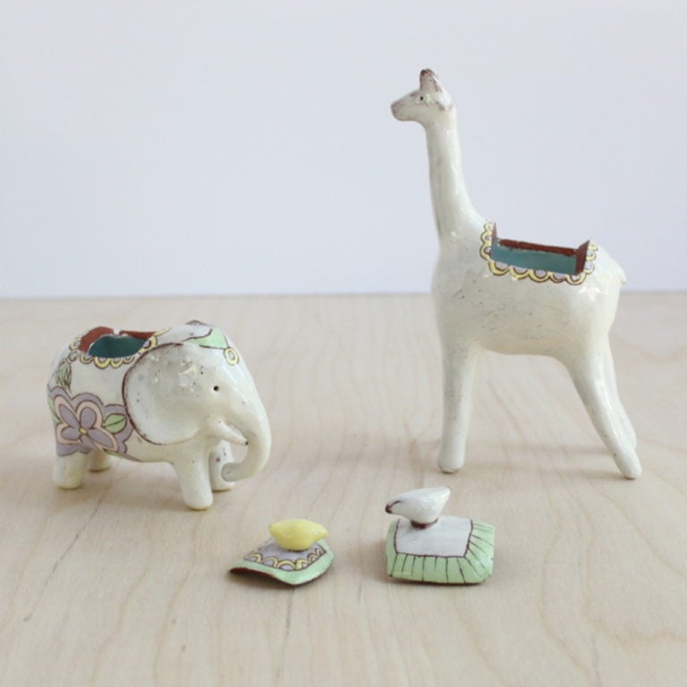 “Using basic hand-building techniques, students will learn how to simplify animal characteristics to create uniquely whimsical animal trinket boxes. Surface decoration using various slip applications and sgraffito will also be explored. This two-day workshop is $200 and includes materials.”