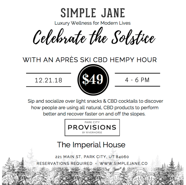 This is a new one – “Hempy Hour” at Provisions by Riverhorse. An Arizona-based company, Simple Jane, will host an event to “explore the benefits of luxury CBD products to improve performance and enhance your recovery on and off the slopes this winter season.” The event will include: