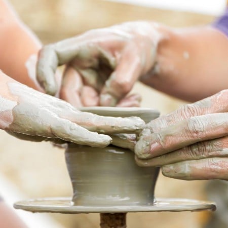 Bring the entire family to learn the basics of wheel throwing together. First, a demonstration, then students learn how to throw on the wheel, decorate and glaze finished pieces with hand-built embellishments.