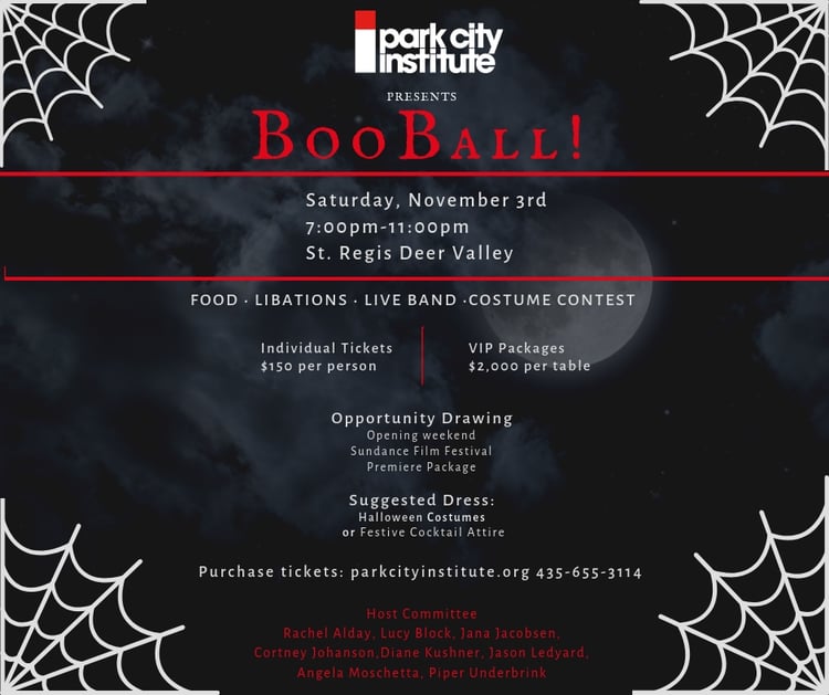 The dogs have been paraded and young ones have trick-or-treated – so it’s time for the adults to get into costume and have some fun at the Boo Ball! Admission includes dinner, drinks, and live music; costumes are strongly encouraged – with prizes awarded to the best. AND – there is also an opportunity drawing for a Sundance 2019 Opening Weekend Film Premiere Package. 100% of proceeds from ticket sales and the opportunity drawing go to benefit the community nonprofit Park City Institute.