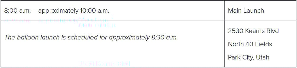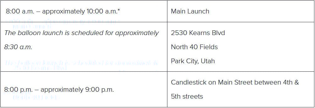 At the main launch, tethered rides may be available on a first-come, first-served basis (but are not guaranteed). And this year, GOBA Springfree Trampolines will have two demo areas, and if you make a purchase, you save $200 – and that money all goes to the Park City Historic Alliance. That’s the non-profit organization which puts on the community Autumn Aloft event each year. You can find that promo code HERE.