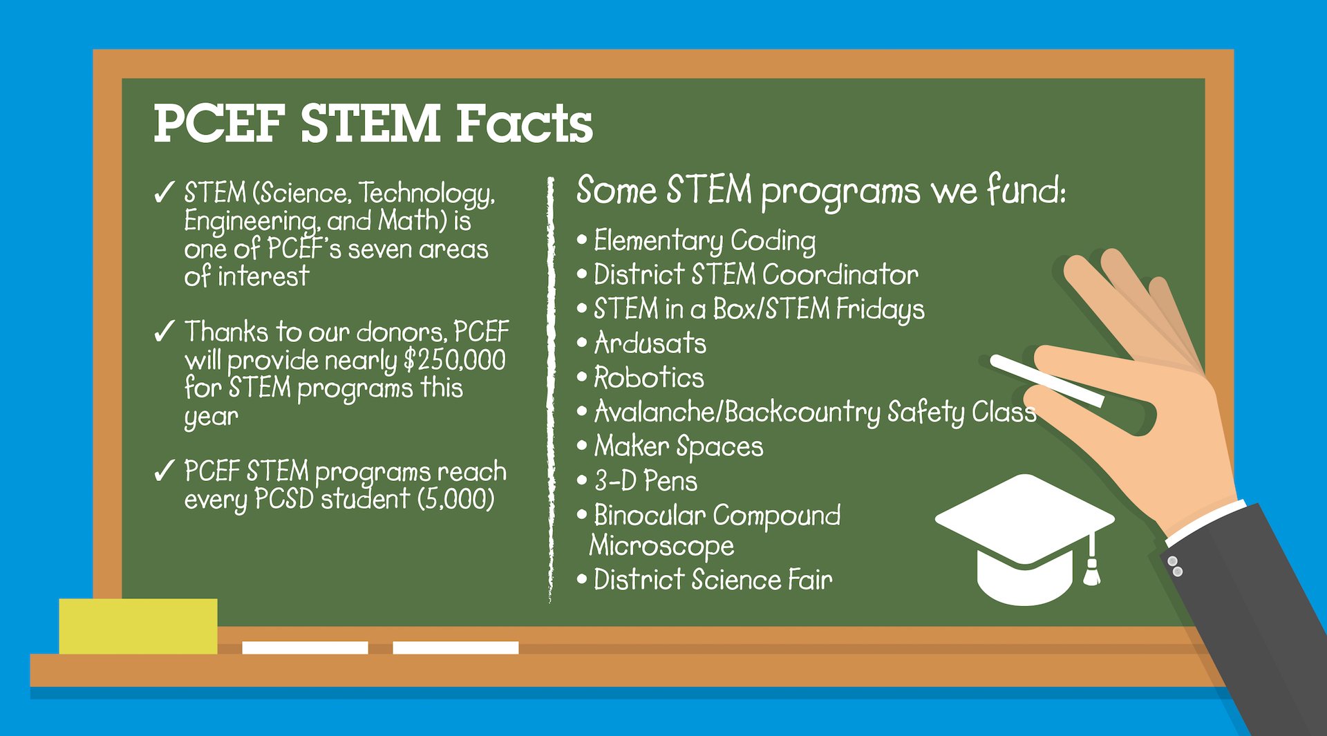 In existence since 1986, PCEF has worked to support and advance academics and student success in the Park City School District in the areas of Academic Success, College and Career Readiness, Early Childhood Education, Professional Development for Teachers, STEM, Student Wellness, and the Arts.